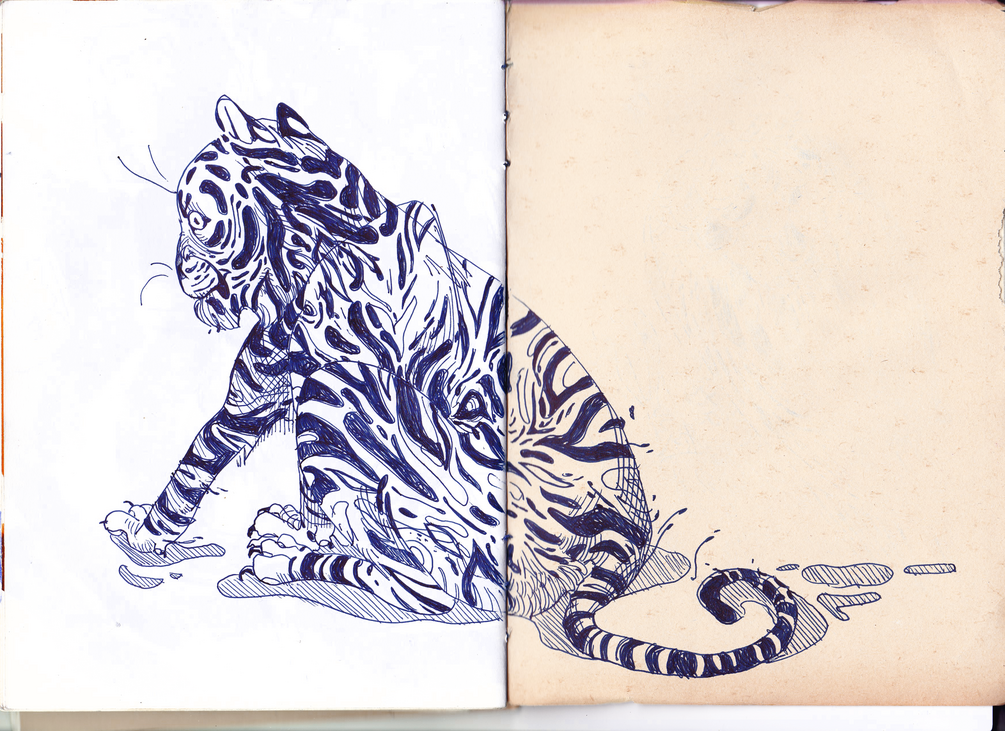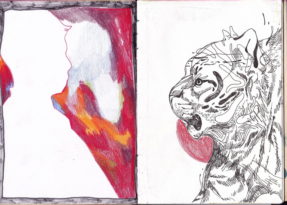 Uncensonsered complete sketchbook! Created in roughly two months, using all kinds of media. You'll get life drawings, short comics, the author's thoughts and a bunch of tigers.
