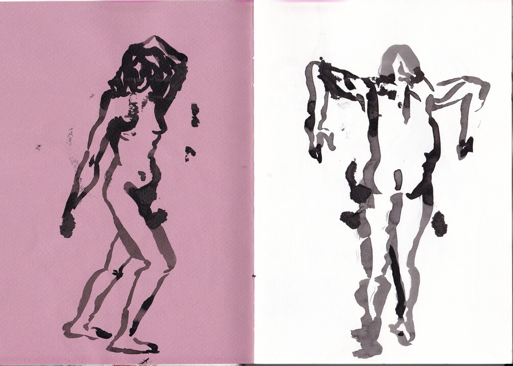 A full sketchbook, created in roughly one month with all kinds of inks and pencils. Lots of life drawing, some short comics, a glimpse into an artists' mindset.